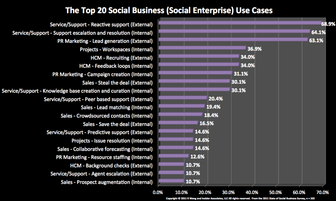 Figure 2. The Top 20 Social Business (Social Enterprise) Use Cases For 103 Early Adopters