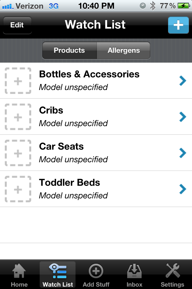 Figure 5. Watch Lists Can Be Created By Product And Allergen Categories