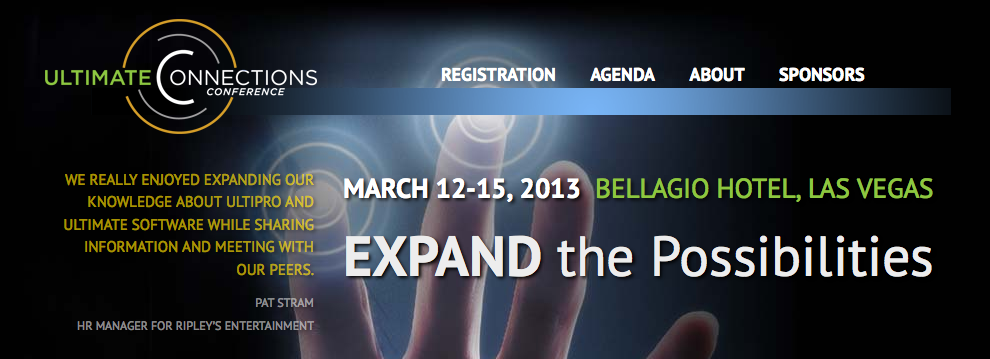 Amidst a crowd of 1500 customers, partners, and attendees, Ultimate Software held their annual gathering from March 12th to March 15th, 2013 in Las Vegas. Geared towards the medium sized to enterprise markets, Ultimate Software has steadily taken market share from ADP for payroll and expanded out into operational and strategic human capital management (HCM) capabilities. New mobile access, generation 4 cloud architecture, and timeline features for employee's highlight Ultimate's growing ambitions and customer requirements.