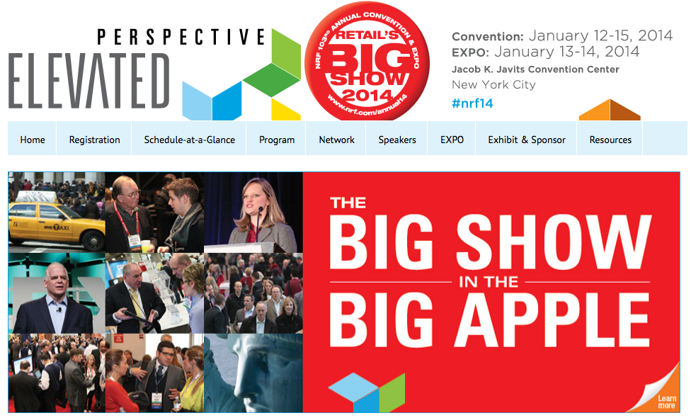 Over 29,000 people are expected to gather at the National Retail Federation's big show (NRF) this Sunday, January 11th, 2014, in New York City. #NRF14 brings the intersection of new retail business models, products, store concepts, technology, society, and culture together!