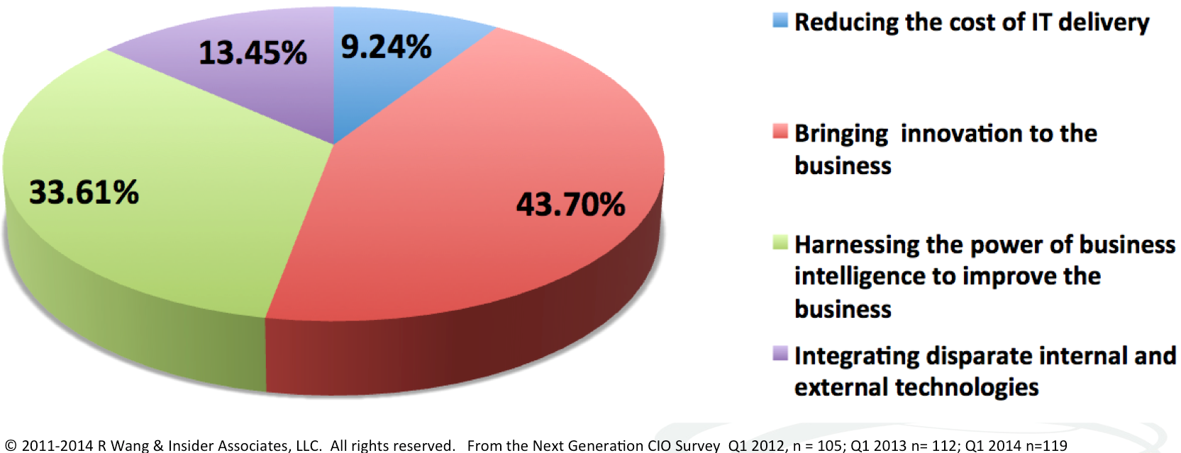 Constellation shares with its clients the fourth annual groundbreaking survey of CIOs later this week. The 2014 survey interviews respondents about their priorities by CIO persona. Constellation identified infrastructure, integration, intelligence, and innnovaiton as the four personas of the next gen CIO in 2011.