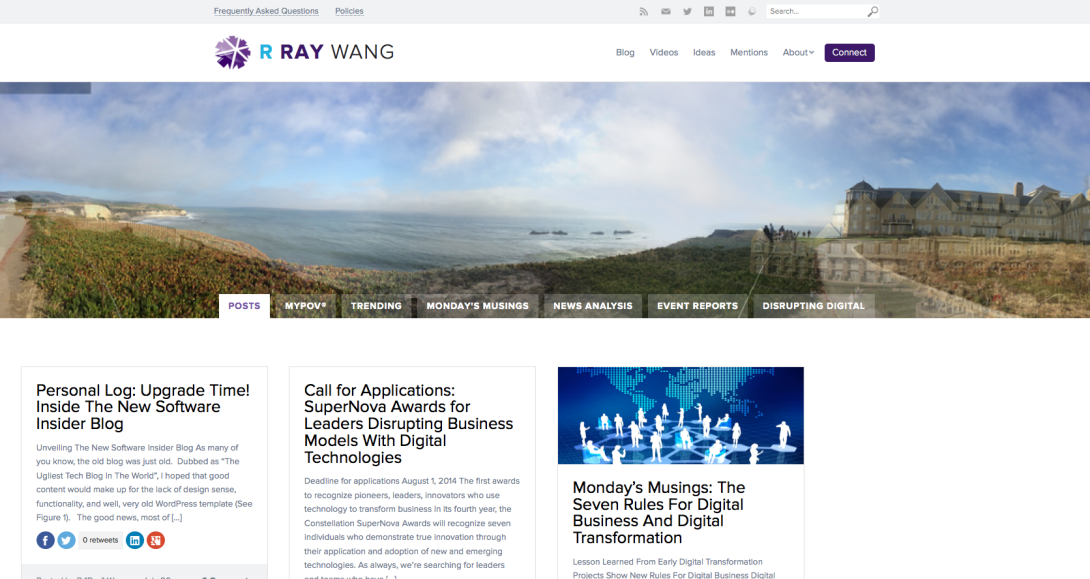 The goal was to take the top content requested and make it easy to access. The top categories searched included Posts, MyPOV (Twitter Stream), Trending, Monday's Musings, News Analysis, Event Reports, and Disrupting Digital.  Those were quickly made into tabs that visitors could quickly filter against.
