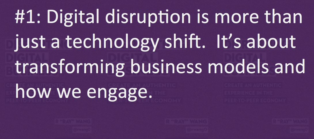 Digital disruption is more than just a technology shift. It's about transforming business models and how we engage. To succeed, we can't just look at the latest cool set of technologies of the day. We have to think bolder about transforming business models. This means understanding the one or two key metrics that a business must measure to ensure their success.