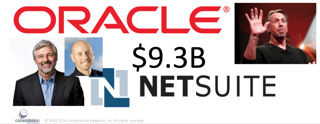 Oracle’s 9.3B acquisition of Netsuite came as no surprise to valley insiders. The rumors have surfaced for weeks. The surprise came as how badly Oracle sought cloud revenue and wanted to bring a friendly partner back into the family. Constellation sees the following for the buy side: