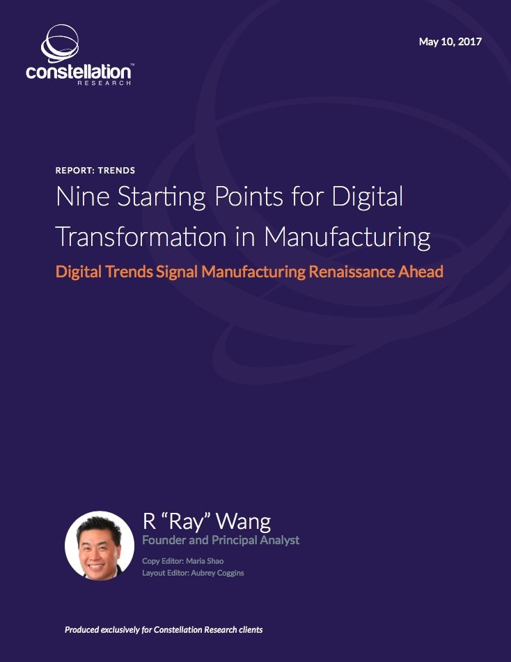 Ready for a renaissance in manufacturing? Do you have a digital transformation strategy? Looking to upgrade? Add your comments to the blog or reach me via email: R (at) ConstellationR (dot) com or R (at) SoftwareInsider (dot) org.