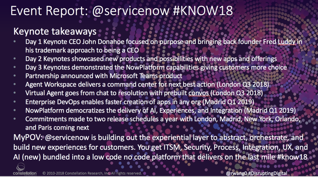 Event Report: @ServiceNow Transforms From #ITSM To Experience Orchestration #know18